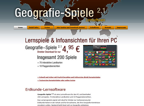 Geografie-Lernsoftware, Info- und Bestellseite zur Software.